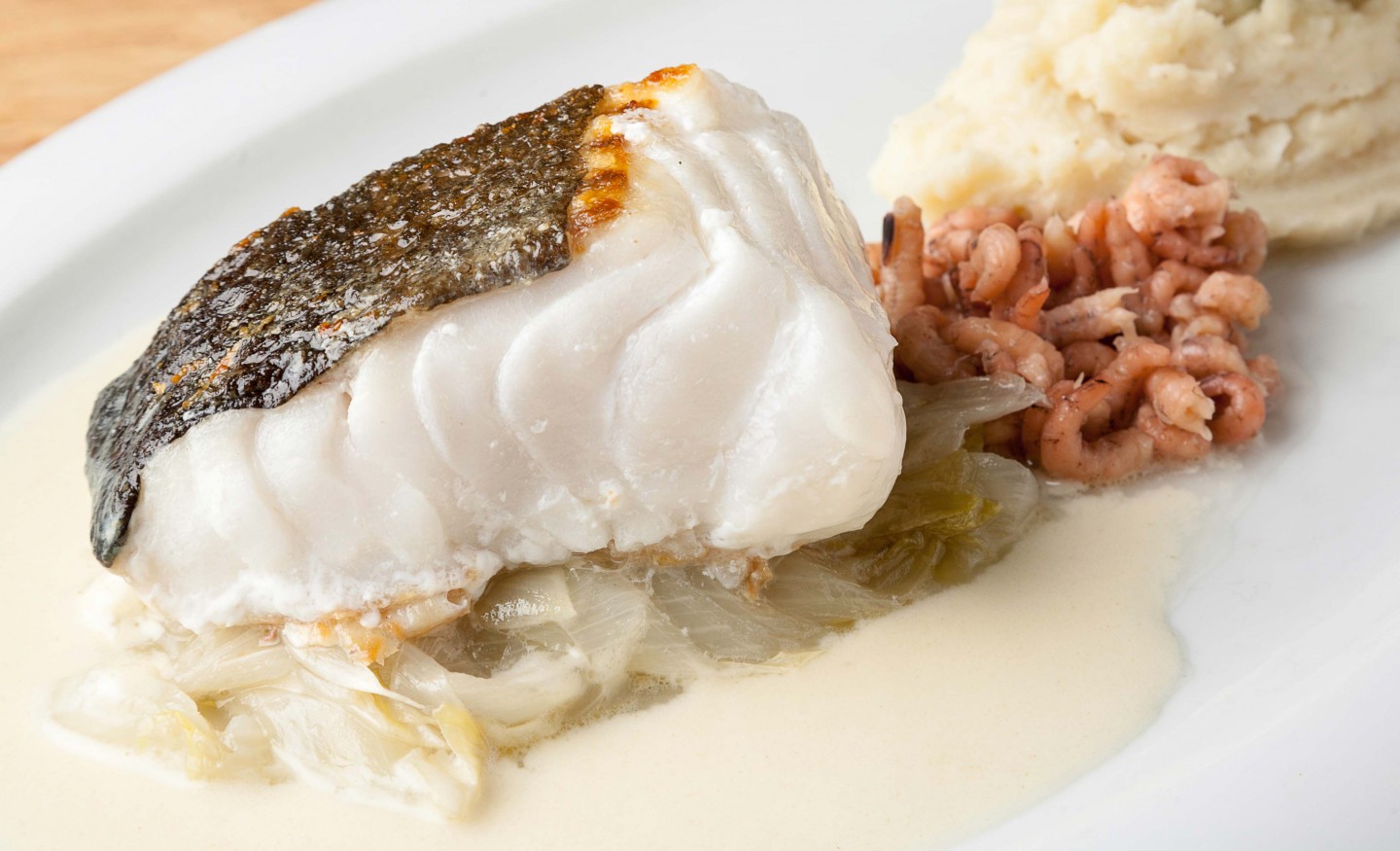 - Gebakken kabeljauw met witloof en garnalen € 43